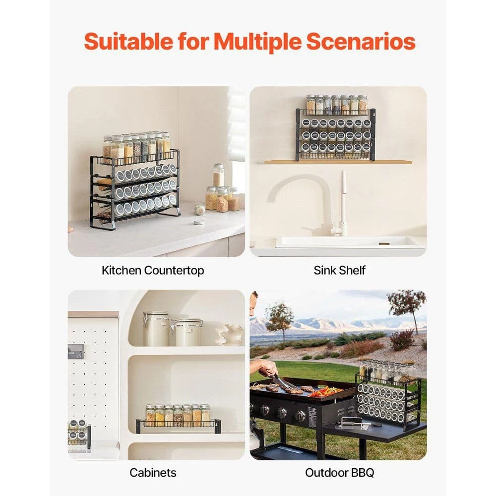 - Flexible combination options includes a 2-tier main rack plus 2 single-tier racks, which can be used together or separately, with adjustable layers to fit different spice types and quantities