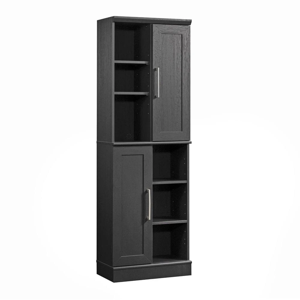 This multipurpose storage cabinet is designed for organized living, featuring six adjustable shelves that let you customize storage to fit your needs-perfect for stowing cleaning supplies, toiletries, and more, bringing peace of mind with a tidy space. Its sleek black finish complements diverse decor styles, and it’s highly adaptable, working well in the laundry room, office, entryway, and other areas.Built with durability in mind, it has a sturdy construction and adjustable base levelers to keep it stable, while its compact dimensions help optimize space usage without sacrificing storage capacity. Assembly is also quick and easy, so you can set it up and start organizing in no time.