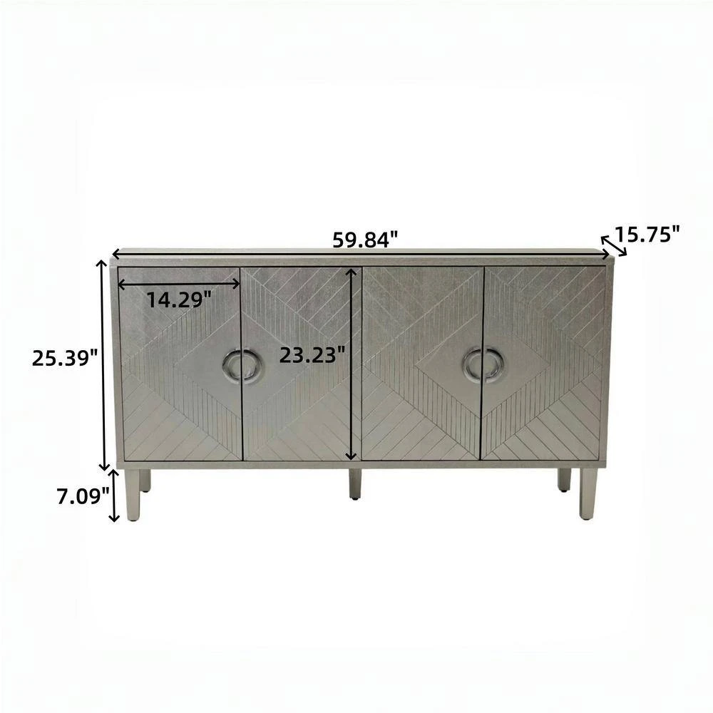 This storage cabinet features a durable construction made of high-quality MDF with solid wood veneer and pine legs, ensuring long-lasting use for all your storage needs. Its contemporary and concise style, accentuated by sculpted lines, zinc alloy semi-circular pulls, and a champagne color scheme, perfectly matches most home decor. The cabinet is versatile and can accommodate clothes, files, tools, and other items, making it a practical solution for all your storage requirements. With a reasonable load-bearing capacity of 80 lbs. on the tabletop and 60 lbs. on the cabinet layer board, it can safely hold your daily essentials. Please note that due to lighting, monitor display, and manual measurement, there may be slight differences in color and size compared to the images provided.