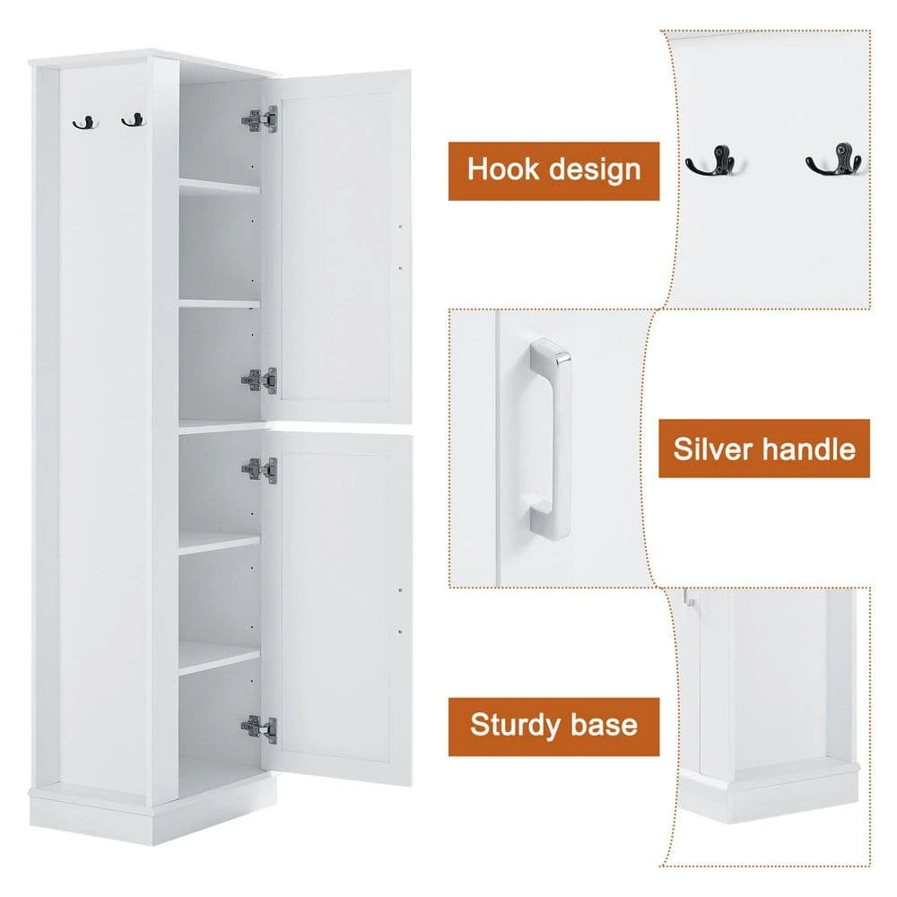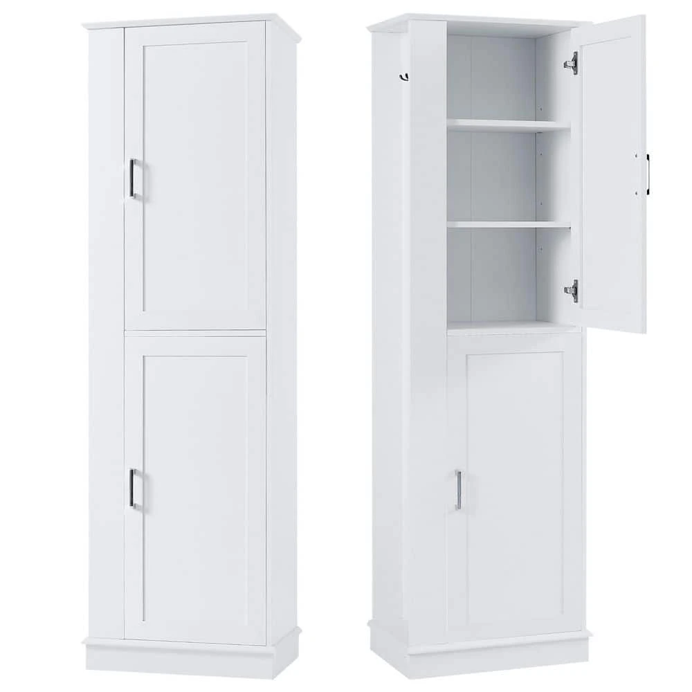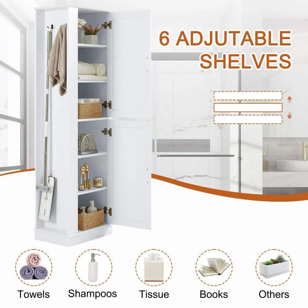 This high-quality MDF board cabinet is designed with both functionality and safety in mind, making it an excellent addition to any bathroom or laundry room. Its surface is waterproof, smooth, and easy to clean, ensuring durability and maintenance convenience. The cabinet features silver metal handles that provide a comfortable grip for opening and closing the doors. Inside, you’ll find two adjustable shelves, one above and another below, offering flexible storage options tailored to your needs. Additionally, a convenient black metal hook is attached to the side, perfect for hanging items such as mops or towels. For families looking to optimize their space, this cabinet can be configured with either side facing left or right, providing versatility in arrangement. It provides ample storage for toiletries and household supplies, including towels, shower gel, and shampoo, accessible to all family members. Blending traditional construction with modern touches, this cabinet brightens up any space while maintaining a subtle elegance. Safety is also a priority; an included anti-toppling device ensures the cabinet remains securely fastened to the wall, preventing accidents and protecting users, especially children. Assembly is required, but the process is made simple with pre-drilled holes for easy installation, accompanied by a comprehensive instruction manual and hardware pack.