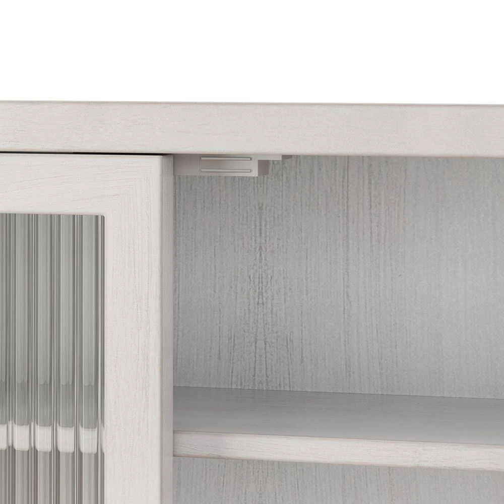 This sideboard beautifully marries vintage charm with minimalist design, offering a timeless piece that complements any home decor. Crafted from long iris glass and featuring meticulous attention to detail in its construction, the cabinet boasts excellent strength and stability, resisting rust, erosion, and wear while providing a modern aesthetic with its fluted glass design that allows for superior light transmission. The wall-mountable design maximizes space utilization and room layout flexibility. Functionally designed to cater to various storage needs, this sideboard includes a three-tier double-door cabinet with ample space for organization and easy access to daily essentials. Each tier can support up to 5 kg/11 lbs, ensuring secure storage. The removable shelves offer versatility to accommodate items of different sizes. Assembly is a breeze thanks to its simple design, complete with all necessary hardware and detailed instructions, making it an effortless addition to your bathroom, kitchen, dining room, or any other living space.