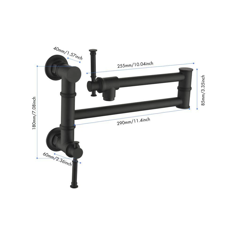 The pot filler faucet stands out with its innovative features. Its free-swivel arm design ensures effortless filling of any pot on the stovetop, while also making it simpler to clean. The double handles offer precise control over the water flow, enhancing user experience and preventing unwanted dripping. Additionally, the faucet’s surface undergoes a special treatment that effectively guards against corrosion and fingerprint marks. Finally, a top-notch aerator ensures a quiet and splash-free water flow, adding to the overall convenience and elegance of this pot filler faucet.